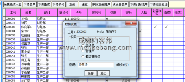 普通用戶;2.登記員(通常用于各分支,分店,店長負責本身人員指紋或人臉登記);3.管理員(除登記員外,還可以操作其它相關(guān)設(shè)置);4.超級管理員就可以進行恢復(fù)出廠設(shè)置等更深入的設(shè)置了.